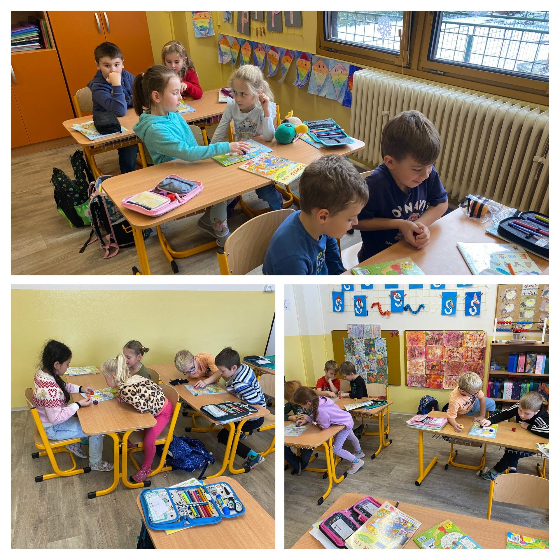 Během listopadu jsme udělali velký kus práce a měli jsme mnoho hezkých zážitků. Naučili jsme se písmena O, P, U, I a trénovali jejich čtení ve slabikách a slovech. Písmena jsme si také vystřihli, nalepili a dotvořili v hodinách pracovních činností. Dokončili jsme Živou abecedu, na jejímž konci na nás vykoukla také malá tiskací písmena, se kterými se postupně budeme seznamovat a učit se je také číst a psát. Odměnou nám byla desková hra na zadní straně ŽA, kterou jsme si s chutí zahráli. Dokončili jsme PS s uvolňovacími cviky, takže nás čeká první písanka. V matematice jsme se propracovali k číslu 5 a 0. Sčítáme, odčítáme, počítáme slovní úlohy. Tématem prvouky byla rodina. V angličtině jsme se naučili pojmenovat školní potřeby a nadále upevňujeme fráze a slovní zásobu z předchozích lekcí. V hodinách hudební výchovy jsme se naučili nové písničky, se kterými jsme vystoupili na předvánoční akci naší školy.