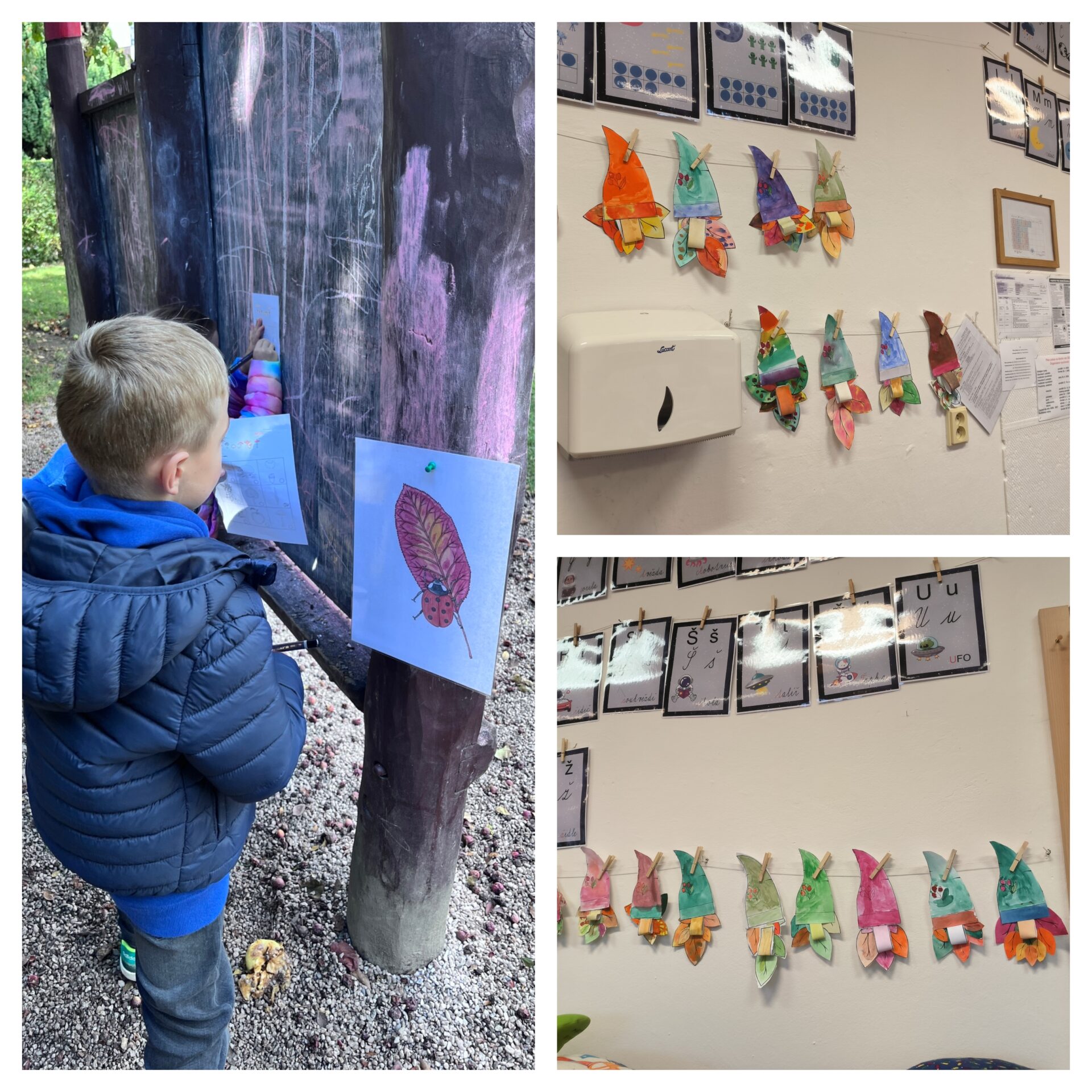 V říjnu jsme také slavili Den stromů – povídali jsme si o nich, učili se je rozlišovat a zařazovat do skupin listnaté/jehličnaté. Některé ze stromů jsme prozkoumali blíže a naučili jsme se k nim přiřazovat jejich plody. Také jsme si vytvořili jednoduchý pracovní list, který nás moc bavil.