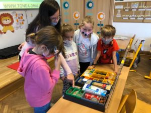 V matematice zdoláváme sčítání do 20 s přechodem přes základ. Řešíme slovní úlohy, doplňujeme tabulky, pracujeme s matematickým dopočítadlem a v počtech soutěžíme mezi sebou.