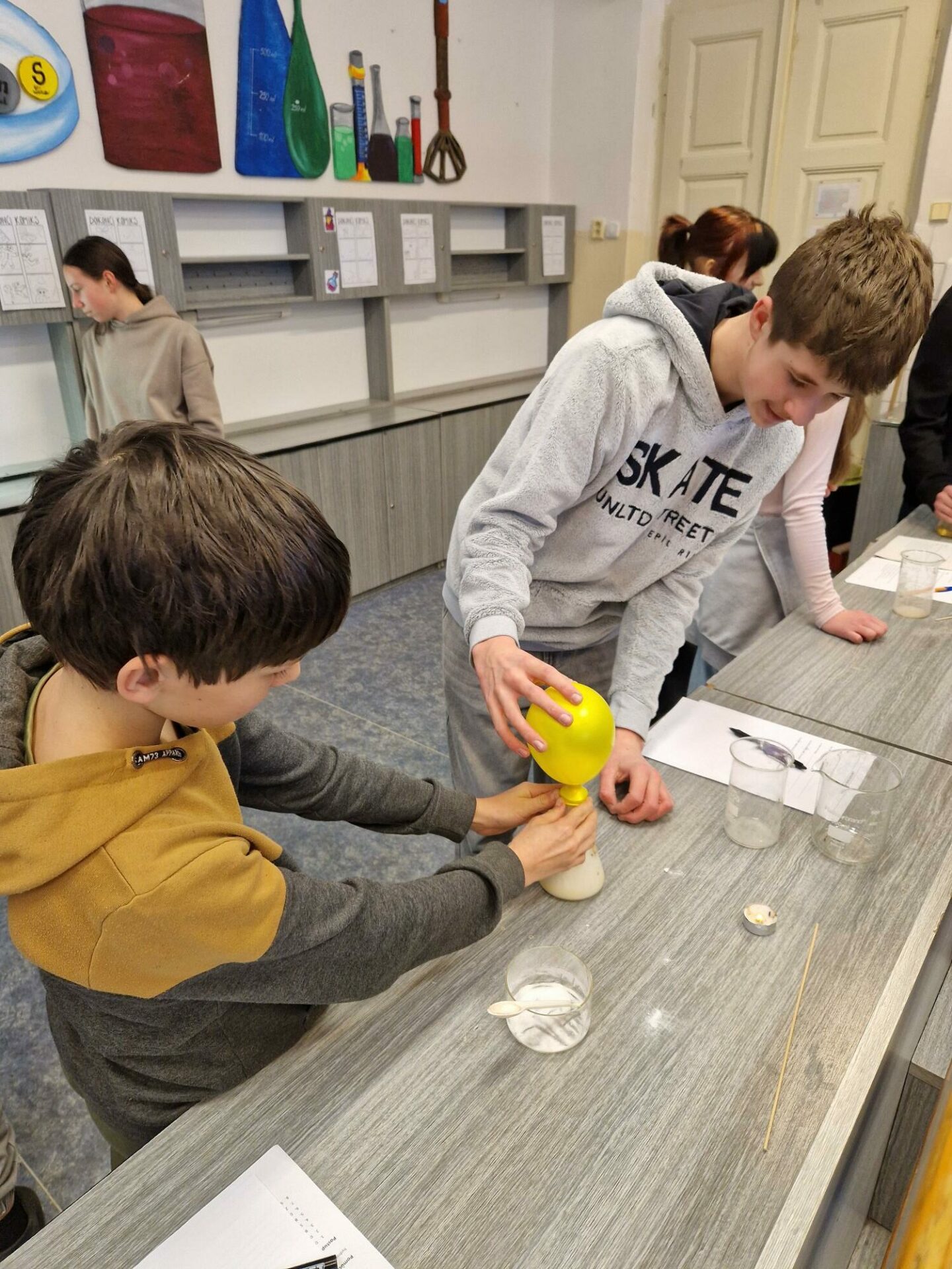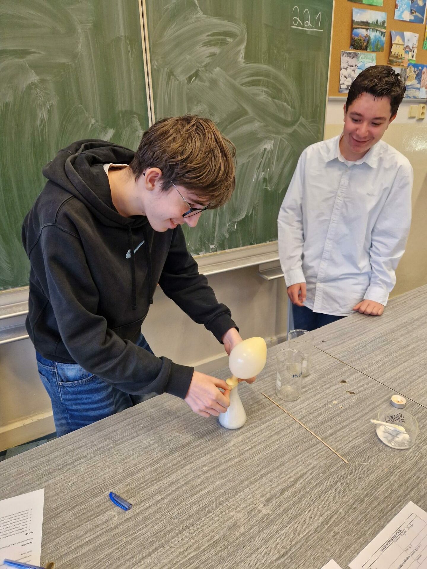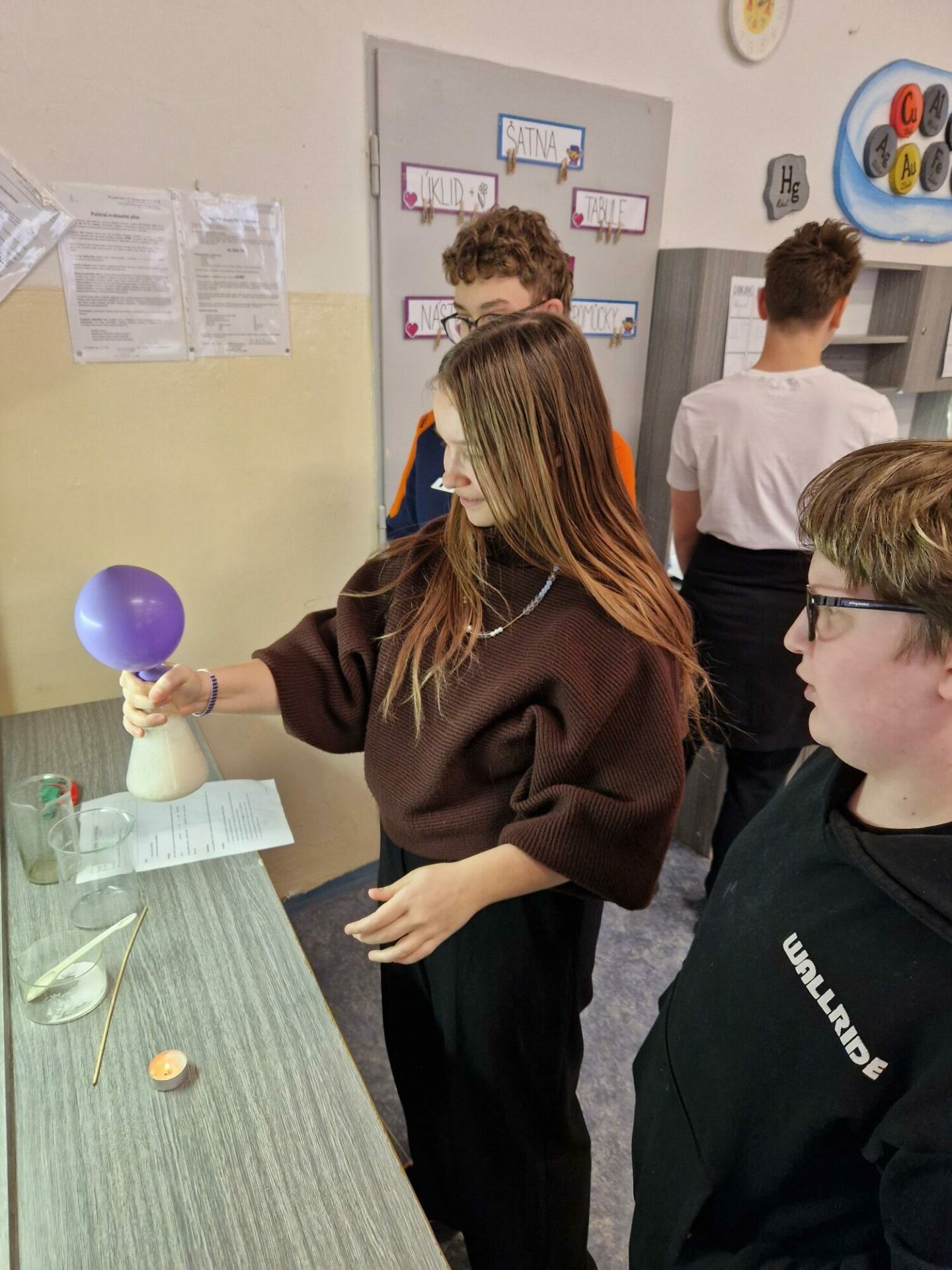 Žáci 8. B zažili hodinu TV s odborníkem na zdravý životní styl – pohyb a zdravotní TV. V hodině chemie pracovali s CO2 v rámci laboratorní práce.