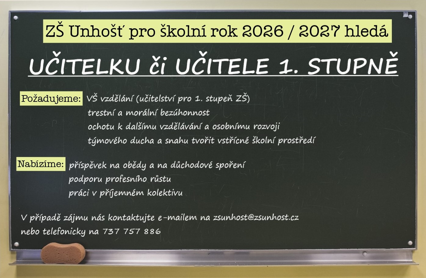 Hledáme učitele či učitelku 1.stupně
